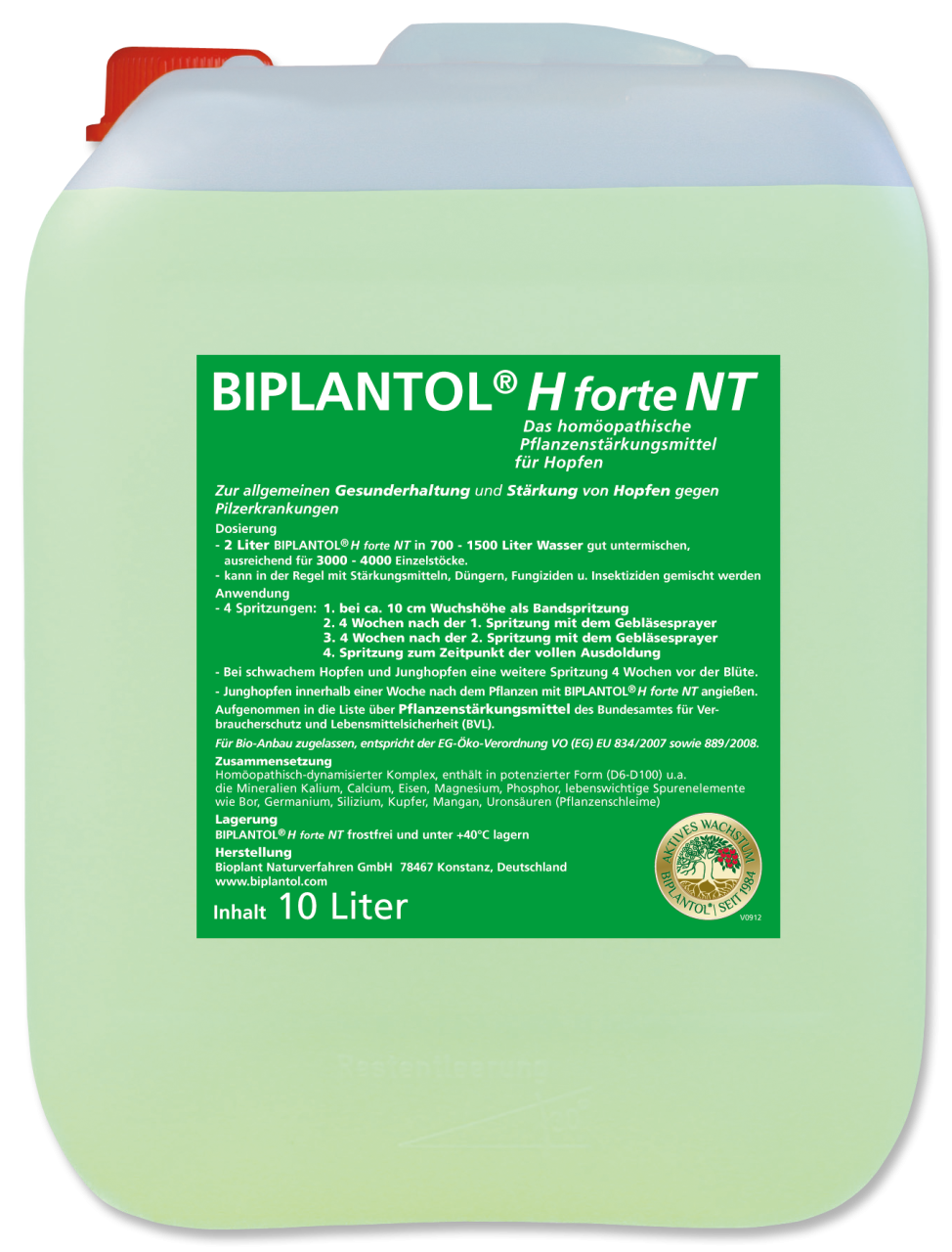 BIPLANTOL® H forte NT fördert die Gesundheit und Vitalität Ihres Hopfens nachhaltig. Es stärkt geschwächte Pflanzen, regt die natürliche Regeneration nach Hagelschäden oder Klimastress an und unterstützt ein kräftiges Wurzelwachstum für bessere Nährstoffaufnahme. Durch die Förderung einer gesunden Symbiose zwischen Wurzeln und Bodenorganismen verbessert es die Bodenstruktur und sorgt für gleichmäßiges Wachstum. So wird Ihr Hopfen widerstandsfähiger gegen Krankheiten wie Verticillium-Welke und Falscher Mehltau, während Blütenbildung und Qualität optimal unterstützt werden. Ideal für eine starke und gesunde Ernte.